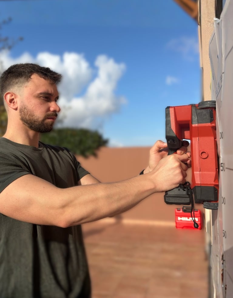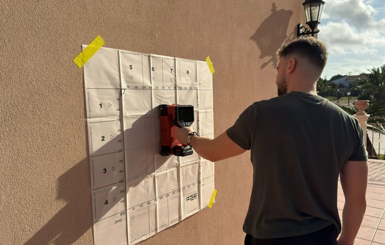 Αποτύπωση του κτιρίου: συλλογή σχεδίων και τεύχους μελέτης. Σε περίπτωση απουσίας αυτών, γίνεται επί τόπου καταγραφή της γεωμετρίας με έναν από τους καλύτερους ανιχνευτές της αγοράς, τον HILTI PS300.